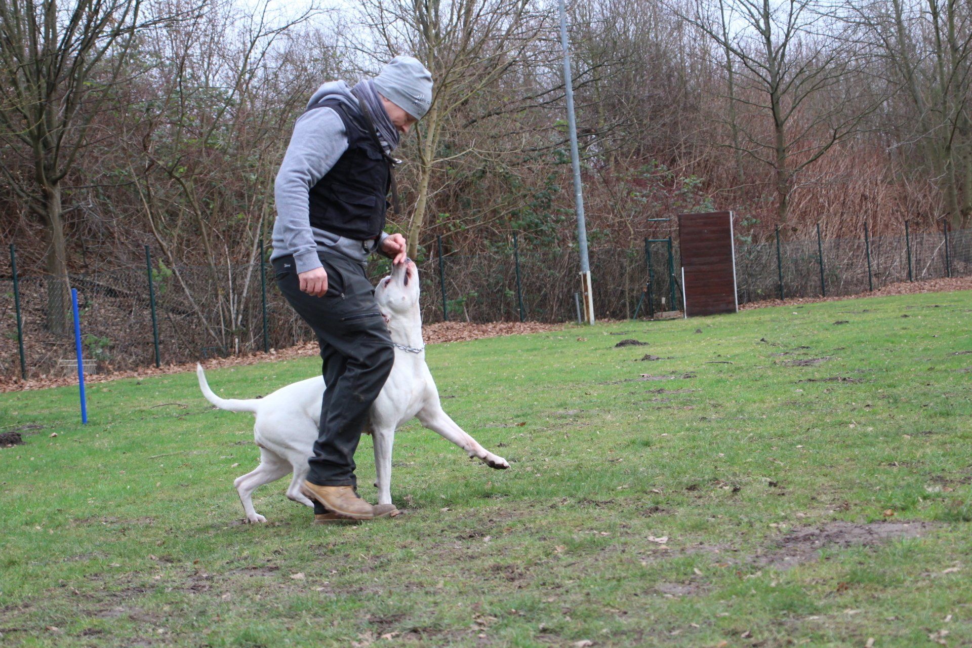 Marco und Lisa trainieren mit ihm in der Unterordnung, im Schutzdienst und in der Fährte.