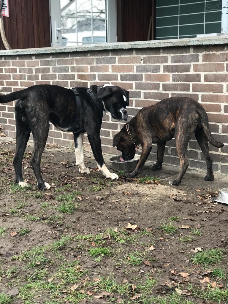 Hier seht ihr nun den jungen, einjährigen Boxer Walker mit seinem Herrchen Marco.