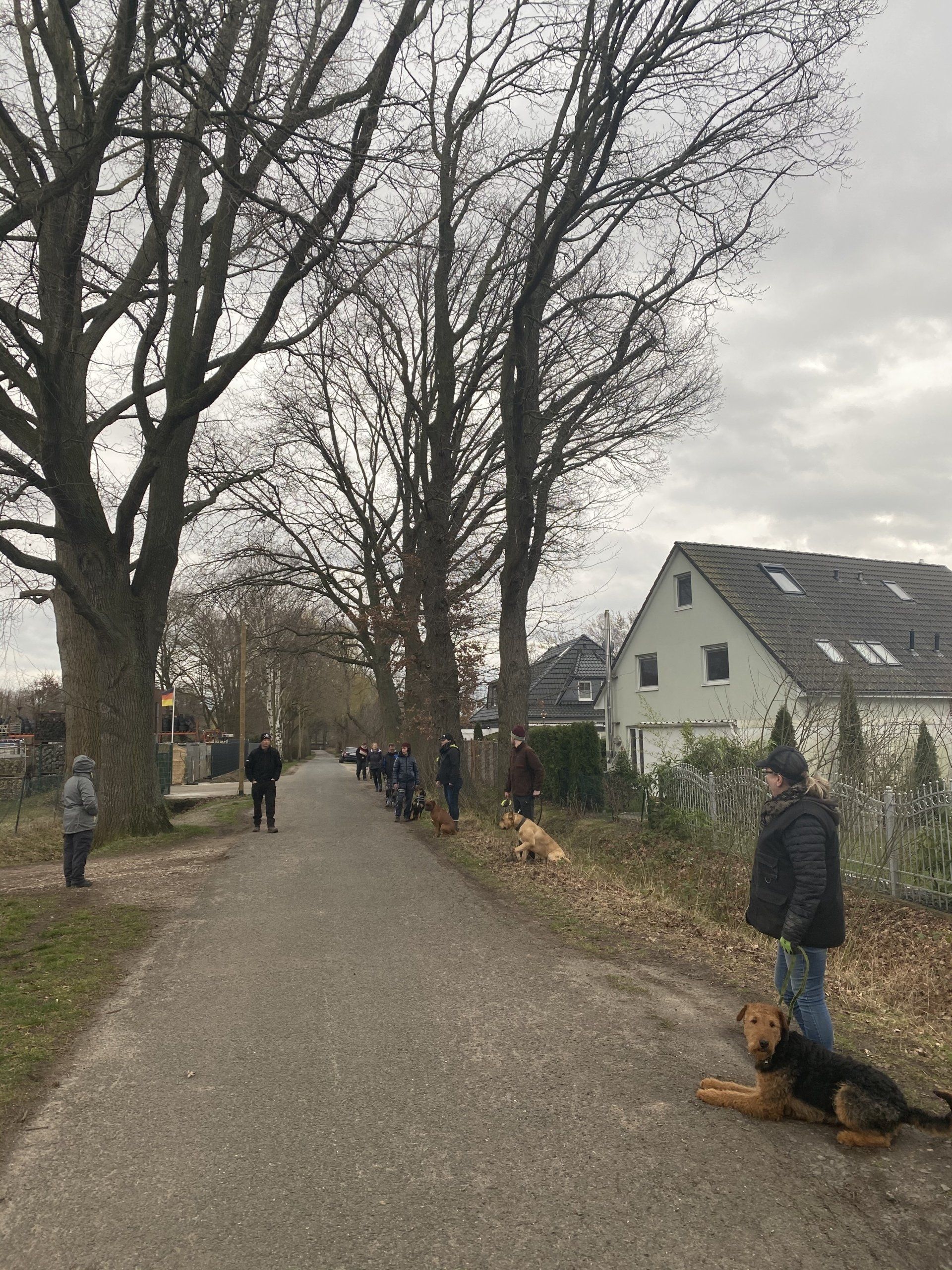 Beispielsweise Michaela & Benni, Nura, Marco & Lisa, Jan und Eva nutzen die Zeit und sprechen sich über passende Wiesen und Ackerflächen, auf denen es eine Erlaubnis zum Fährten gibt, ab.