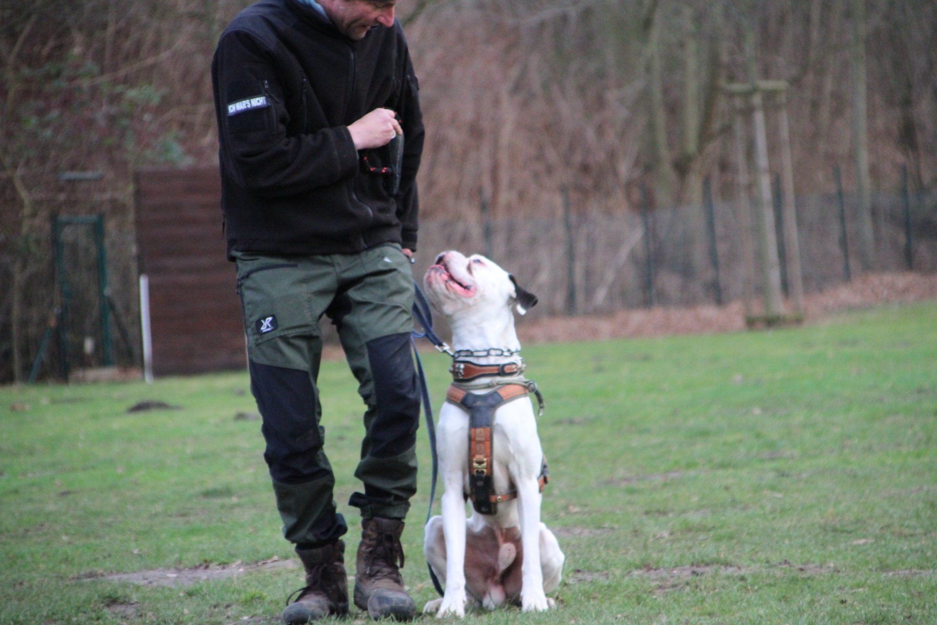 Dies sind Boxerhündin Emma und ihr Herrchen und Hundeführer Marco.
